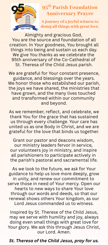 The Co-Cathedral of St. Theresa of the Child Jesus is grateful for the sharing of your financial blessings to support the mission of our Church; as we live out our call to Stewardship, as our way of life.