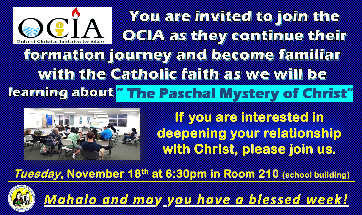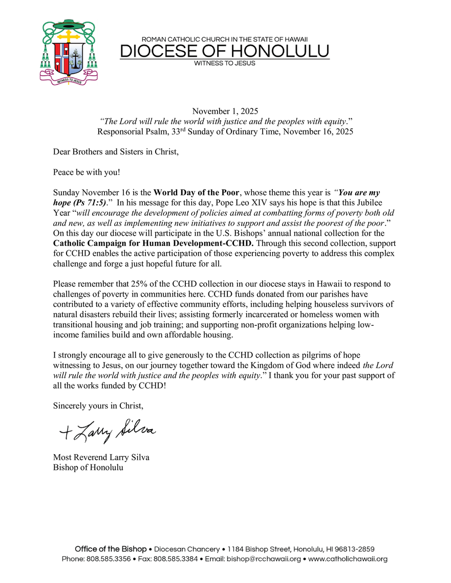 For more information, please call our parish office at (808) 521-1700.
