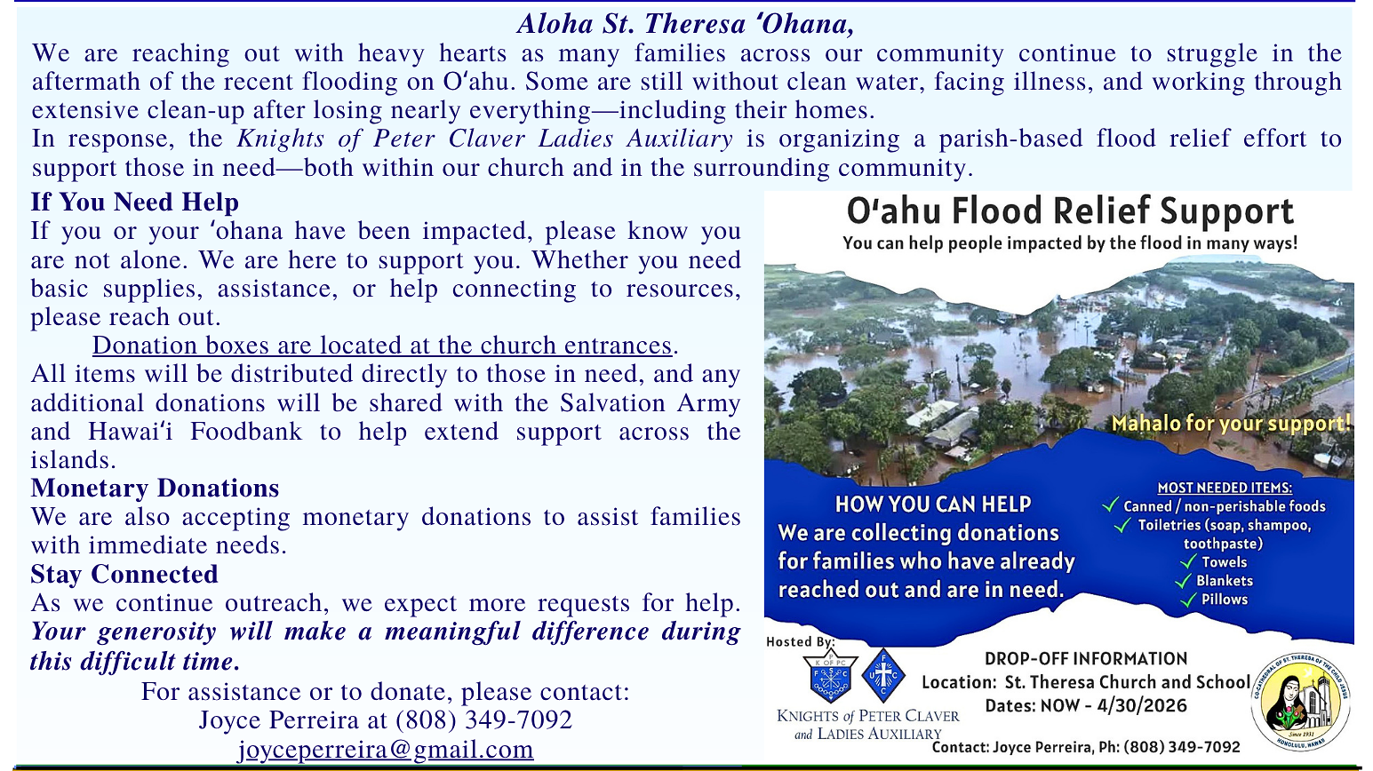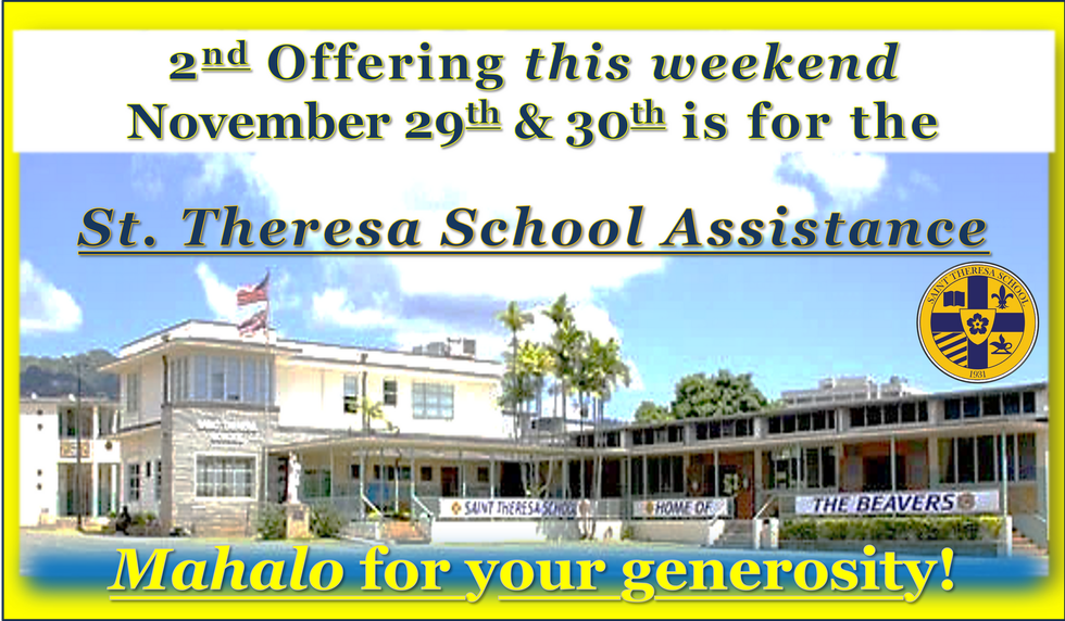 We the people of the Co-Cathedral of Saint Theresa of the Child Jesus, seek to be an example of the presence of God through our Christian Catholic worship, education, service, and stewardship of all God's gifts. We celebrate our diversity of age, culture, language, and viewpoints as a sign of God’s all-powerful and ever-present love in our community of faith. We strive to witness the gospel of Jesus Christ to evangelize and to respond in love, as well as compassion to our community in Honolulu, to be a welcoming place to all who seek the grace, fellowship, and love of God.