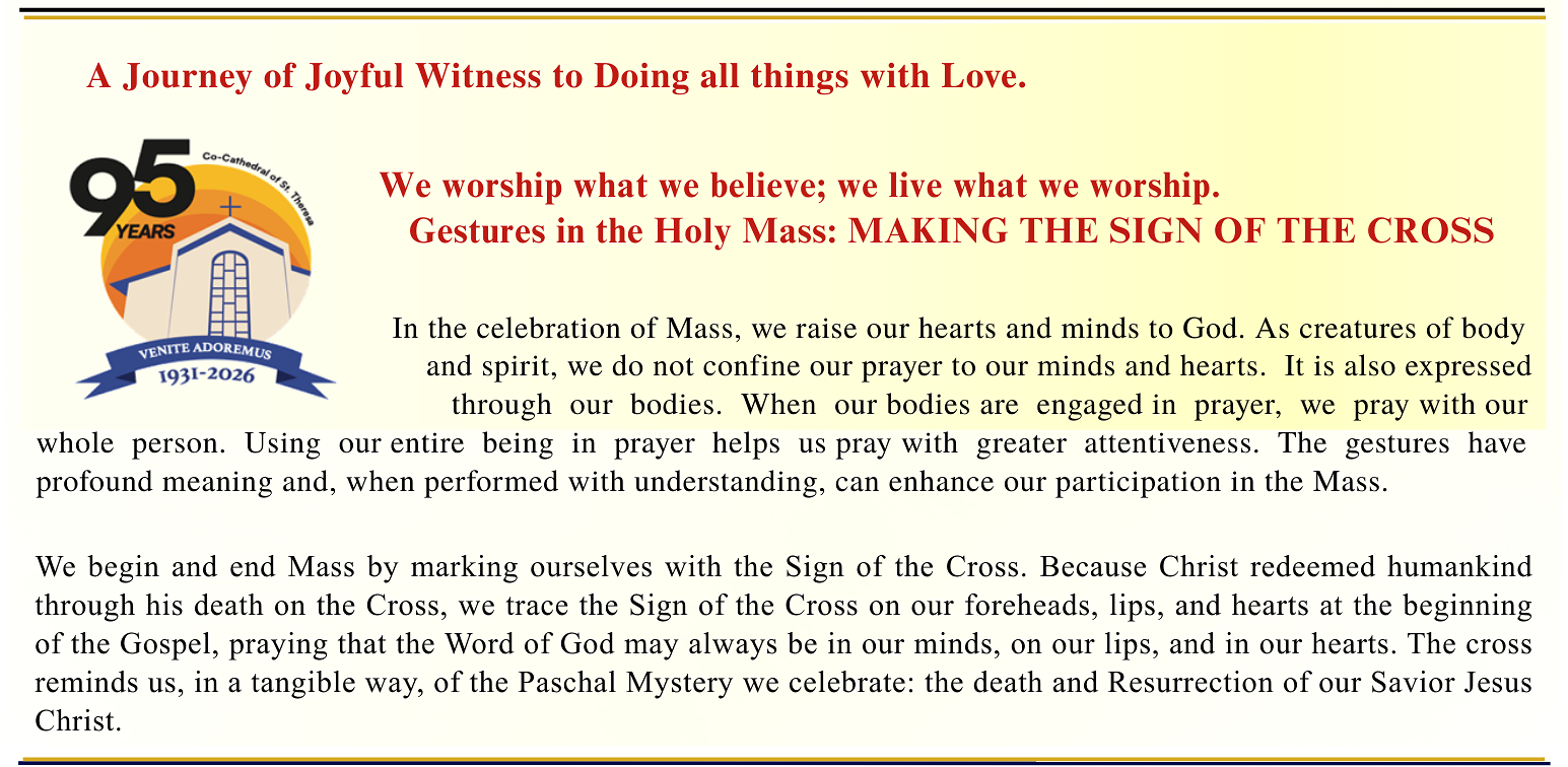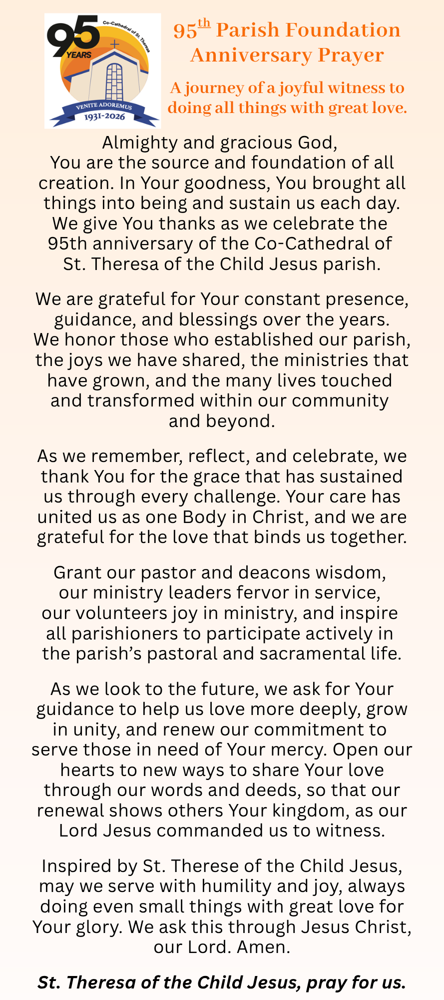 The Co-Cathedral of St. Theresa of the Child Jesus is grateful for the sharing of your financial blessings to support the mission of our Church; as we live out our call to Stewardship, as our way of life.