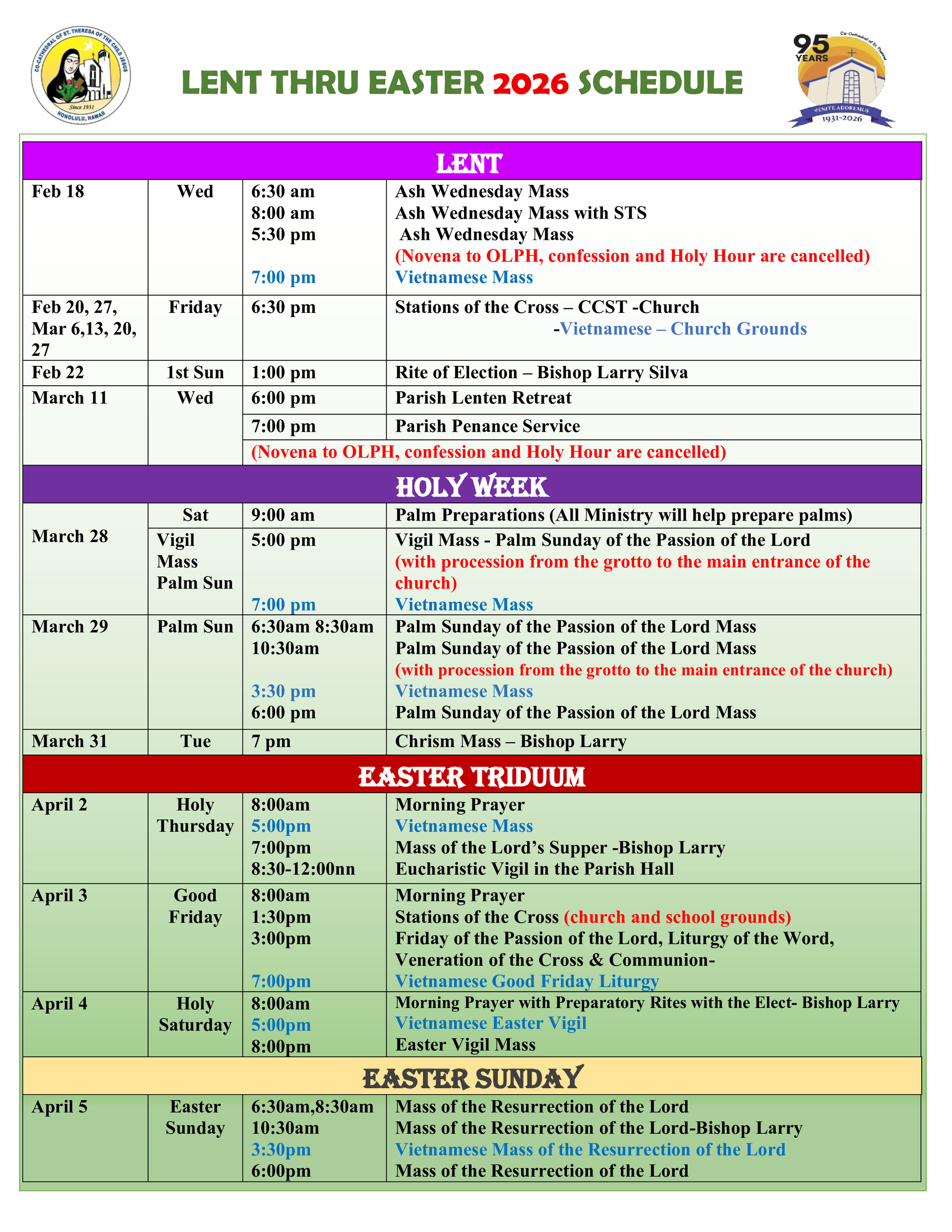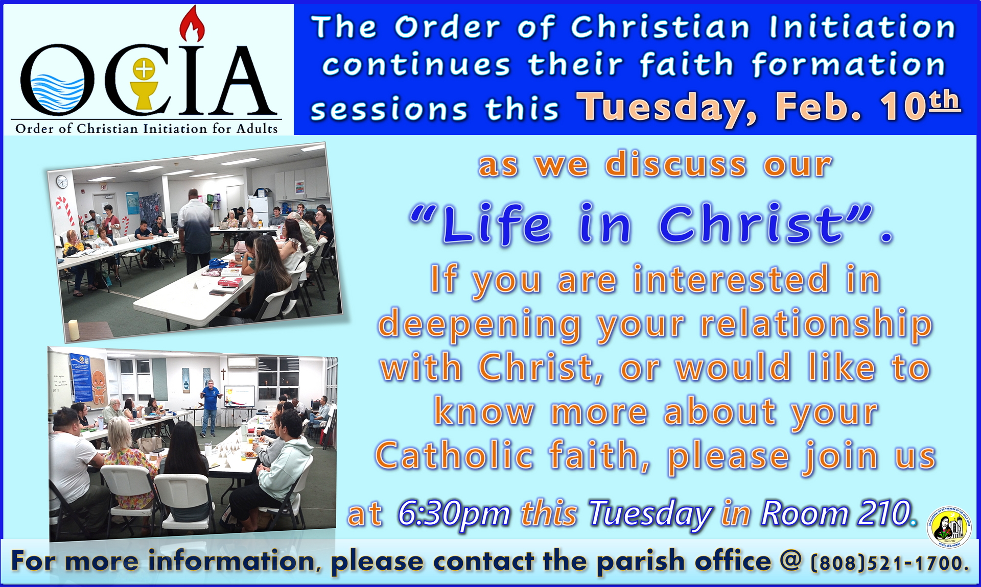For more information, please call our parish office at (808) 521-1700.