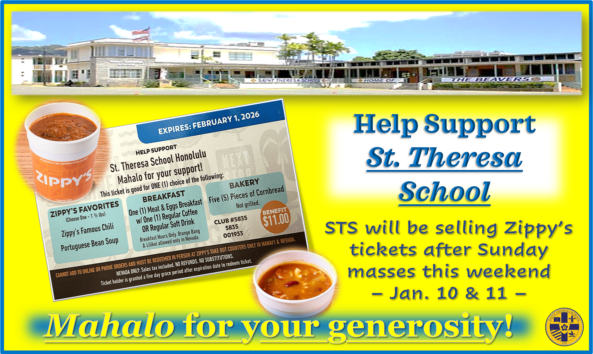 - Send in your donation to St. Theresa School 712 North School St., Honolulu, HI 96817 and indicate on your check “scholarship fund.”